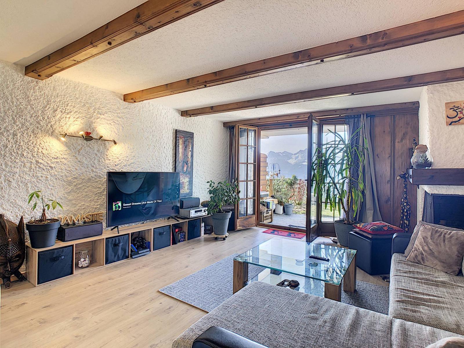 Il bénéficie d'une grande terrasse d'environ 100 m² orientée sud où vous pourrez profiter de la magnifique vue sur les Dents-du-Midi et du soleil.