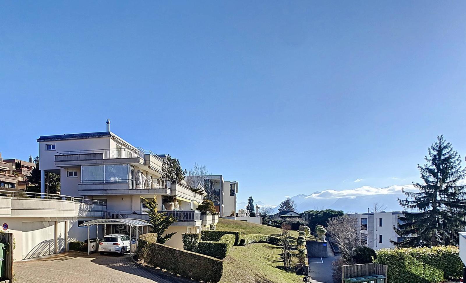 L'appartement dispose de deux places de parc extérieures, une place de parc intérieure et une place de parc couverte. Le tout pour un montant de CHF 90'000.- en sus du prix de vente.