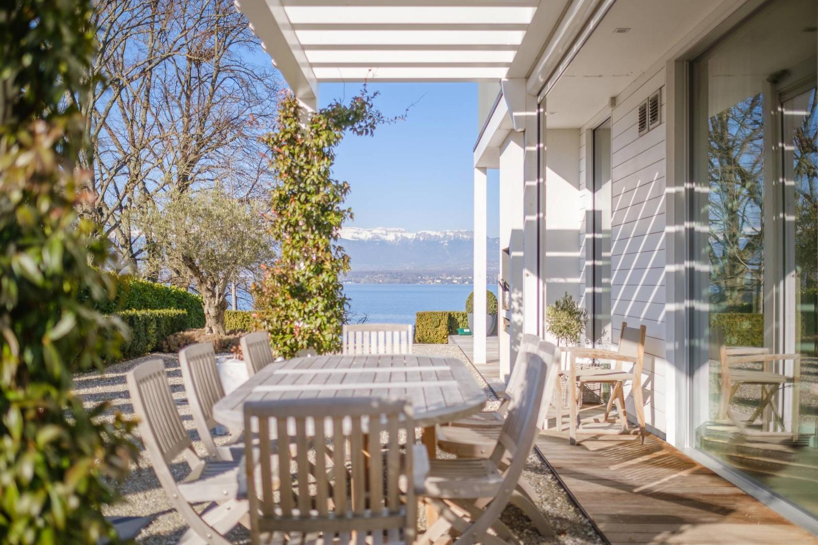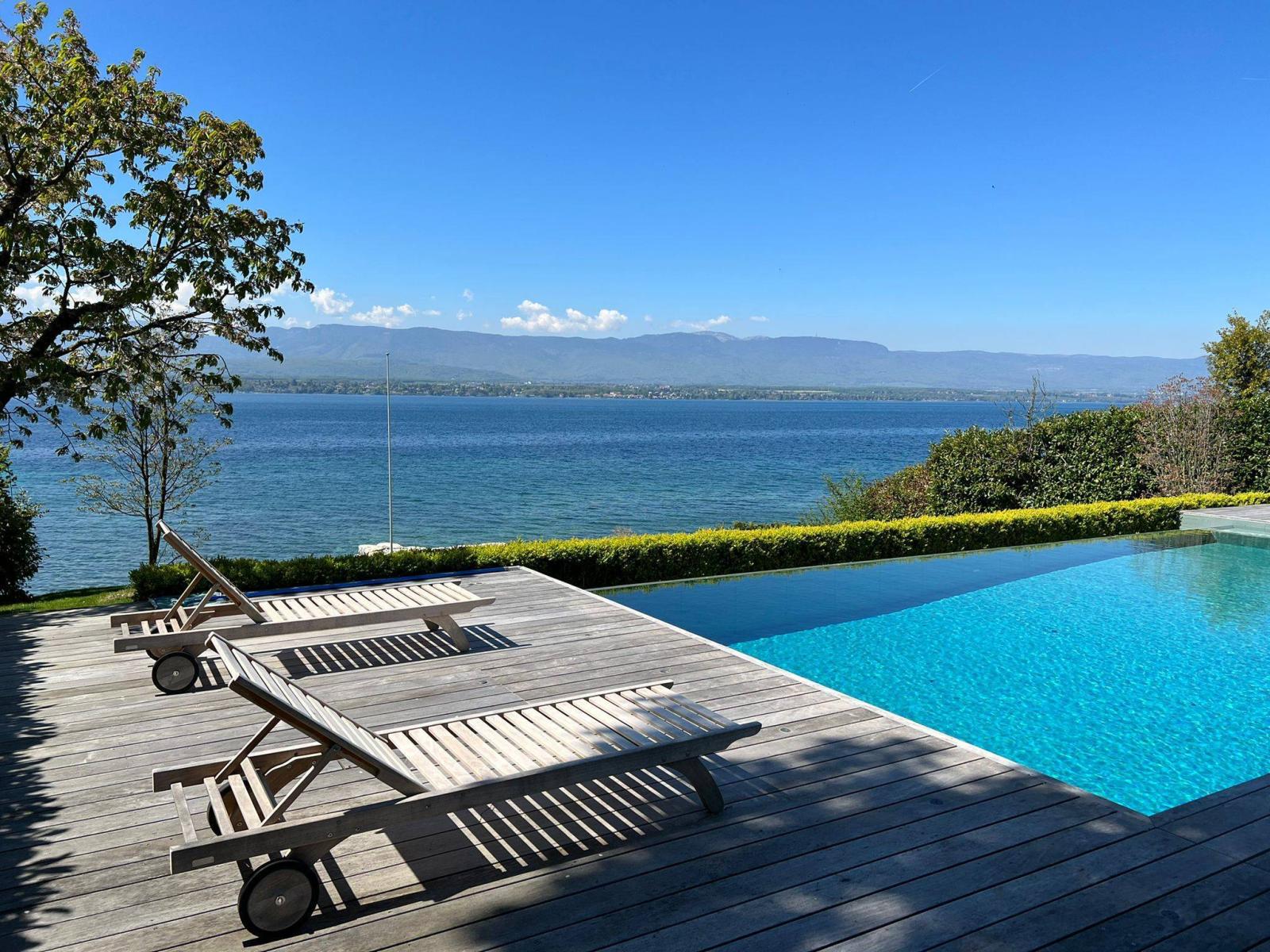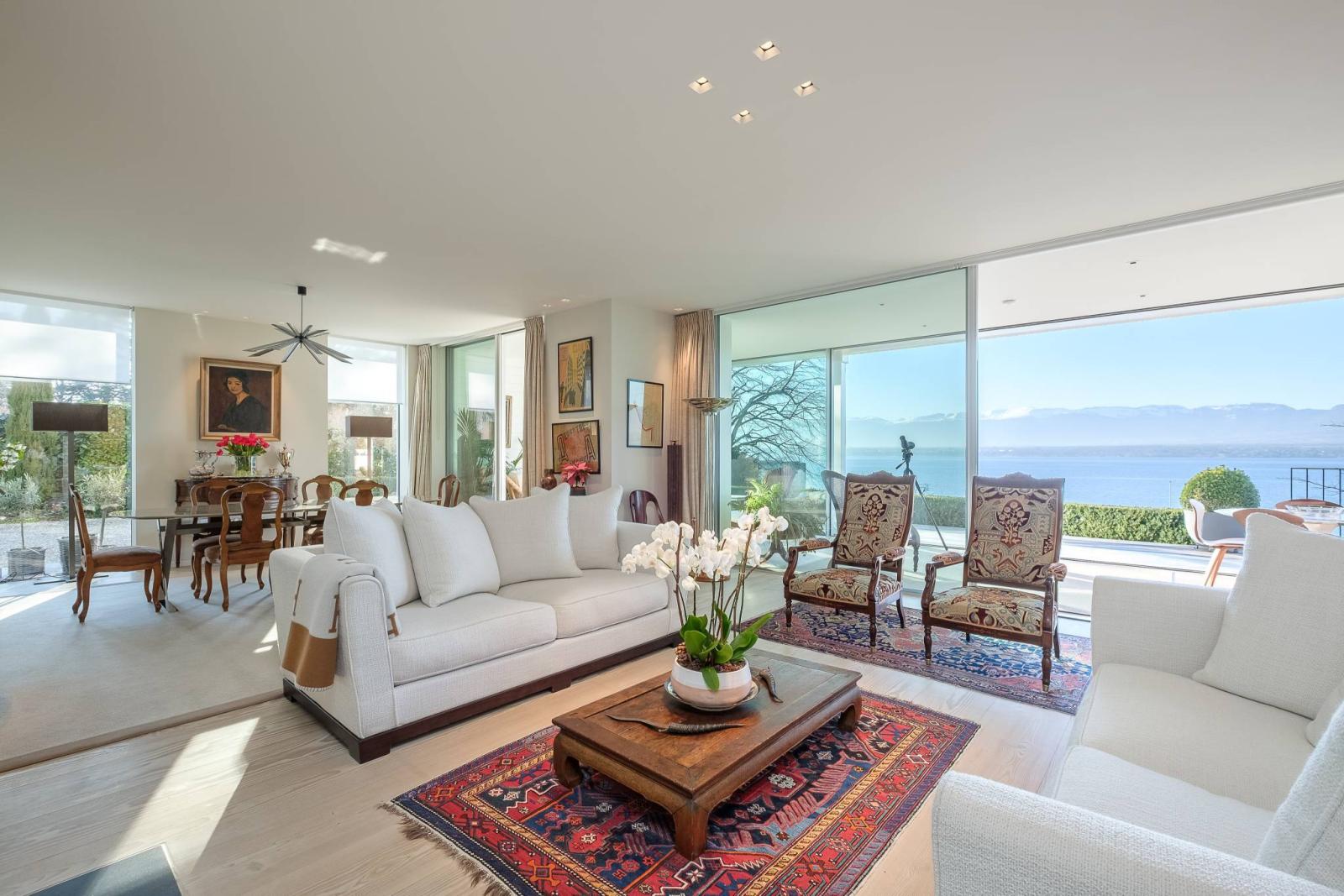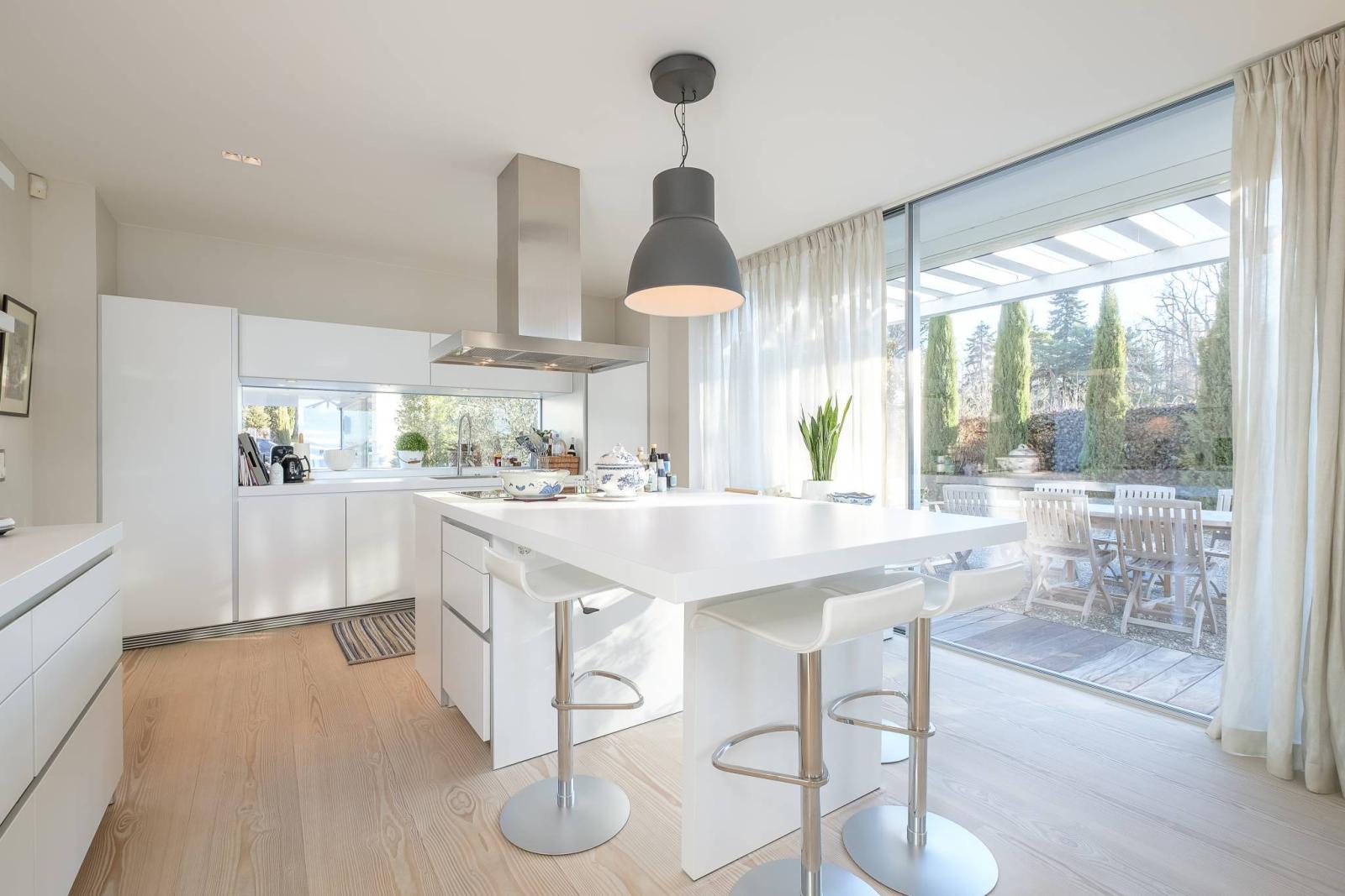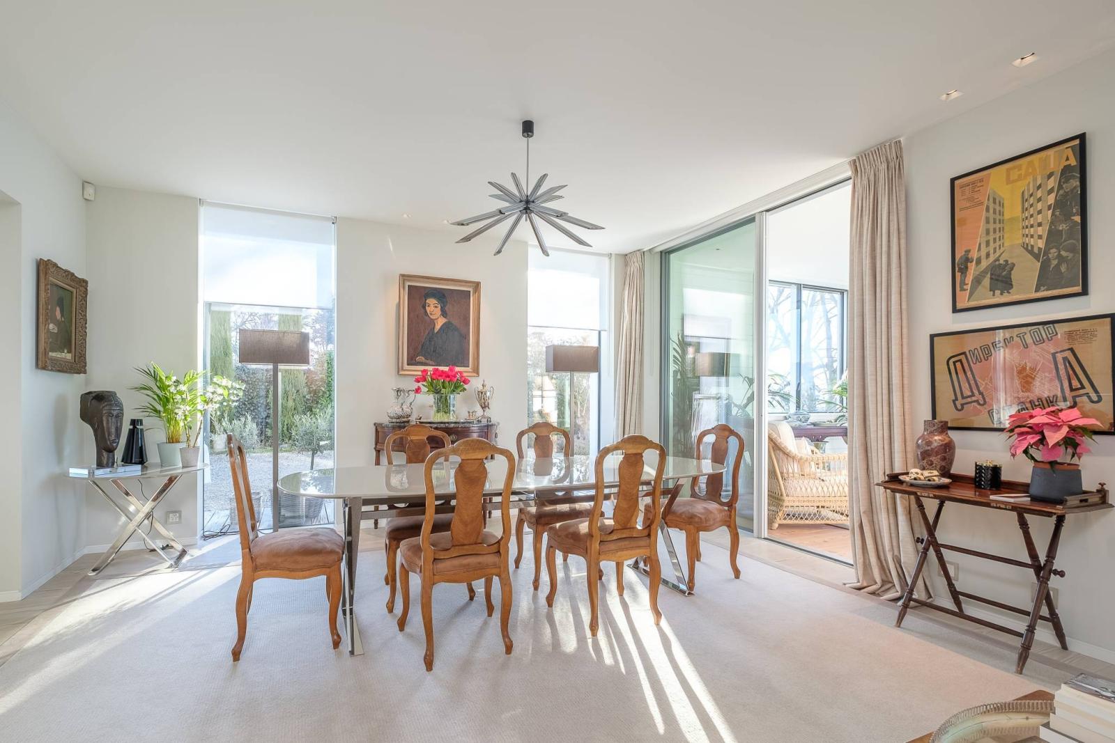 Le rez-de-chaussée d'une surface de 276 m², offre un spacieux hall de réception de 30 m², un vestiaire de 15 m², un toilette visiteurs, une cuisine Bulthaup équipée et agencée avec ilot central, un espace de vie de 70 m² comprenant; un séjour avec cheminée , une salle à manger et une bibliothèque. Ces pièces sont prolongées par un agréable jardin d’hiver de 45 m² entièrement vitré d’où vous profiterez pleinement de la beauté de la piscine à débordement et de la quiétude du lac.