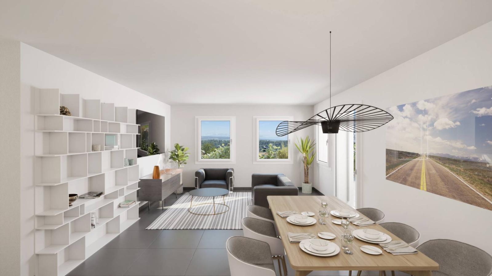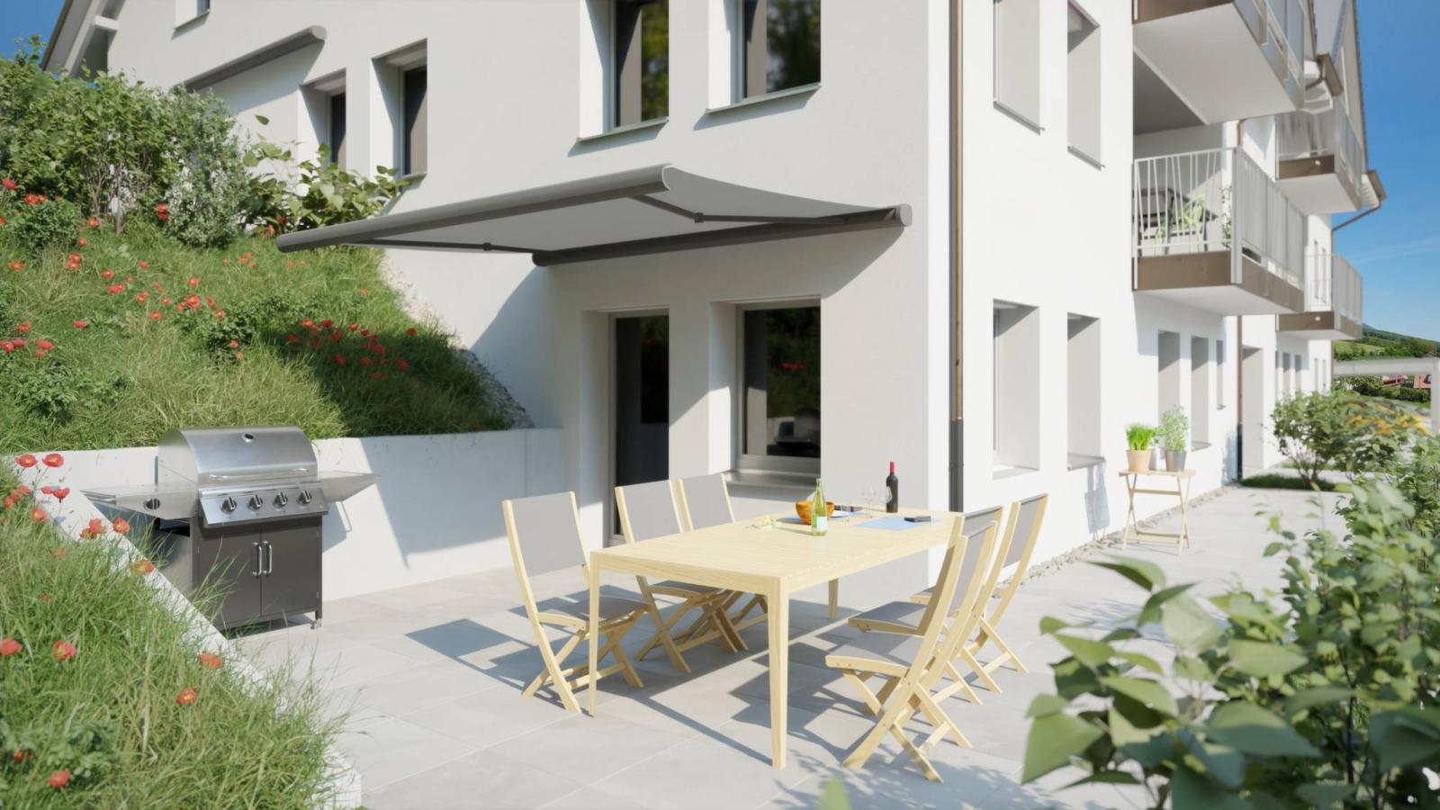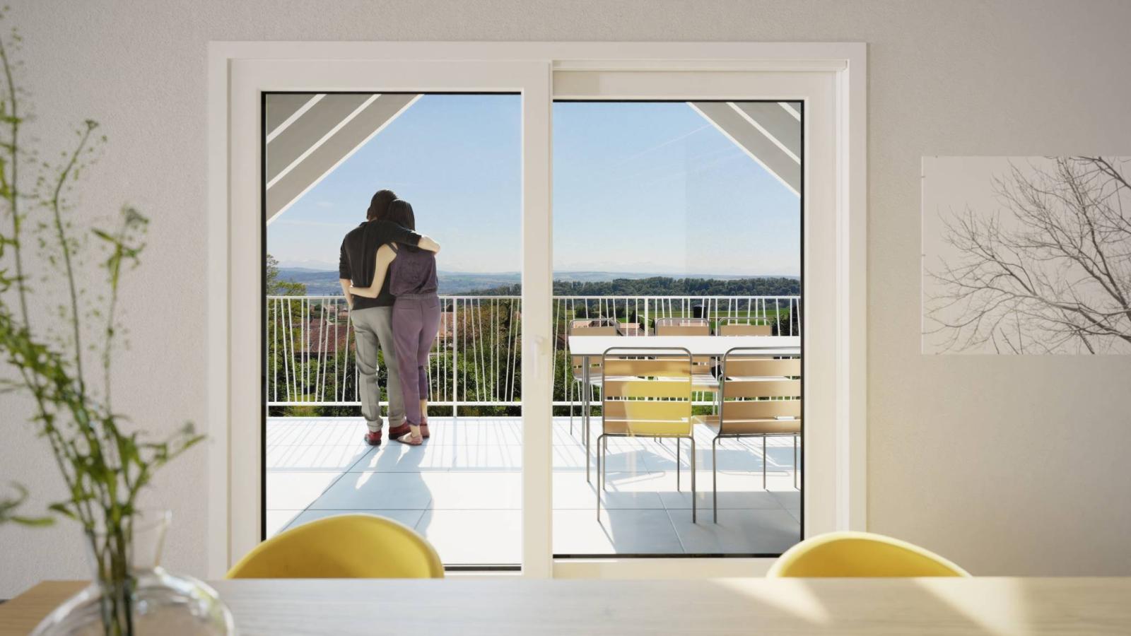 Tous les logements offrent un panorama d'exception sur les Alpes et le lac de Neuchâtel et chaque appartement est orienté plein sud ce qui permet de jouir d'une belle luminosité tout au long de la journée, grâce à la présence des grandes baies vitrées coulissantes.