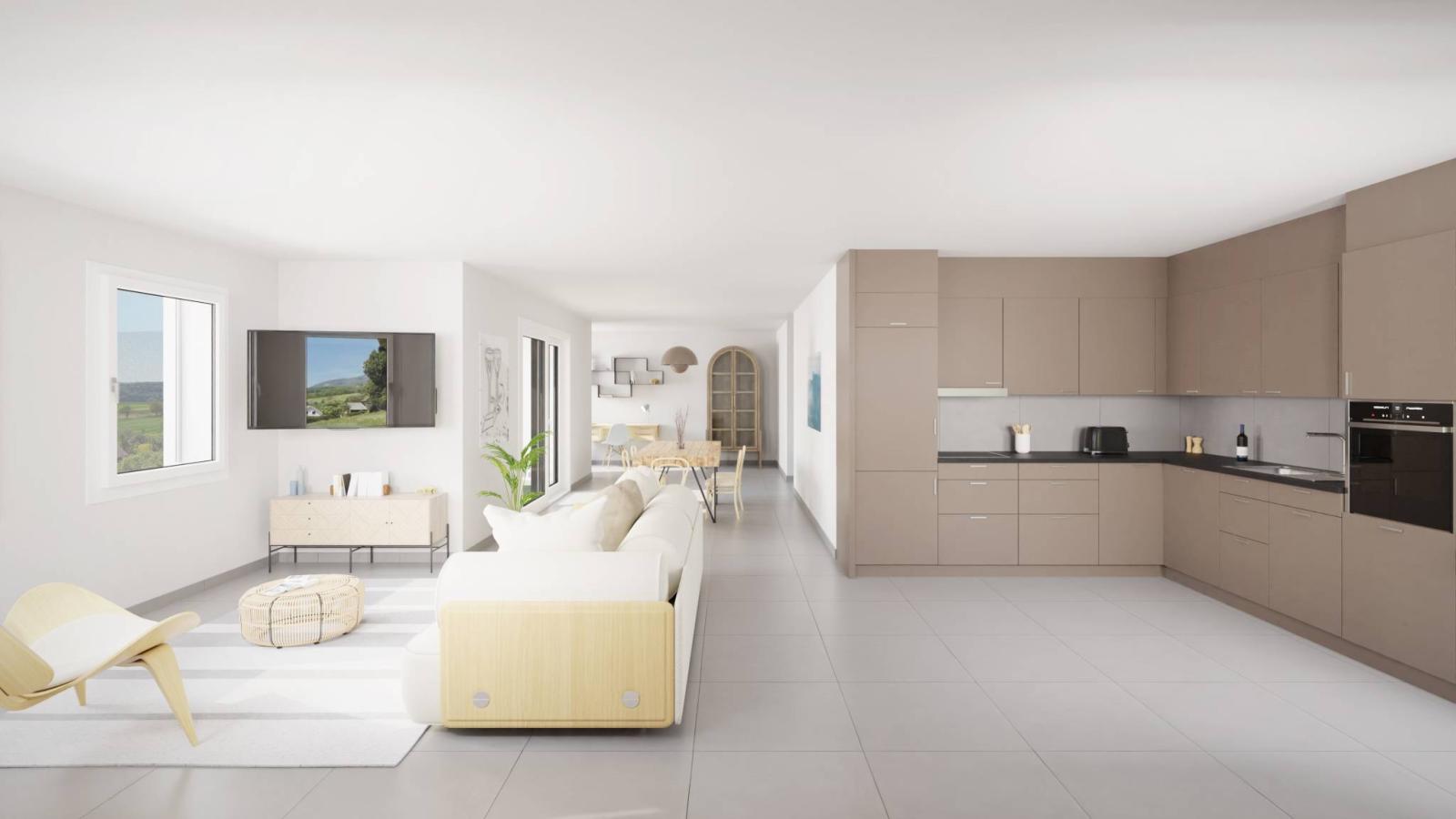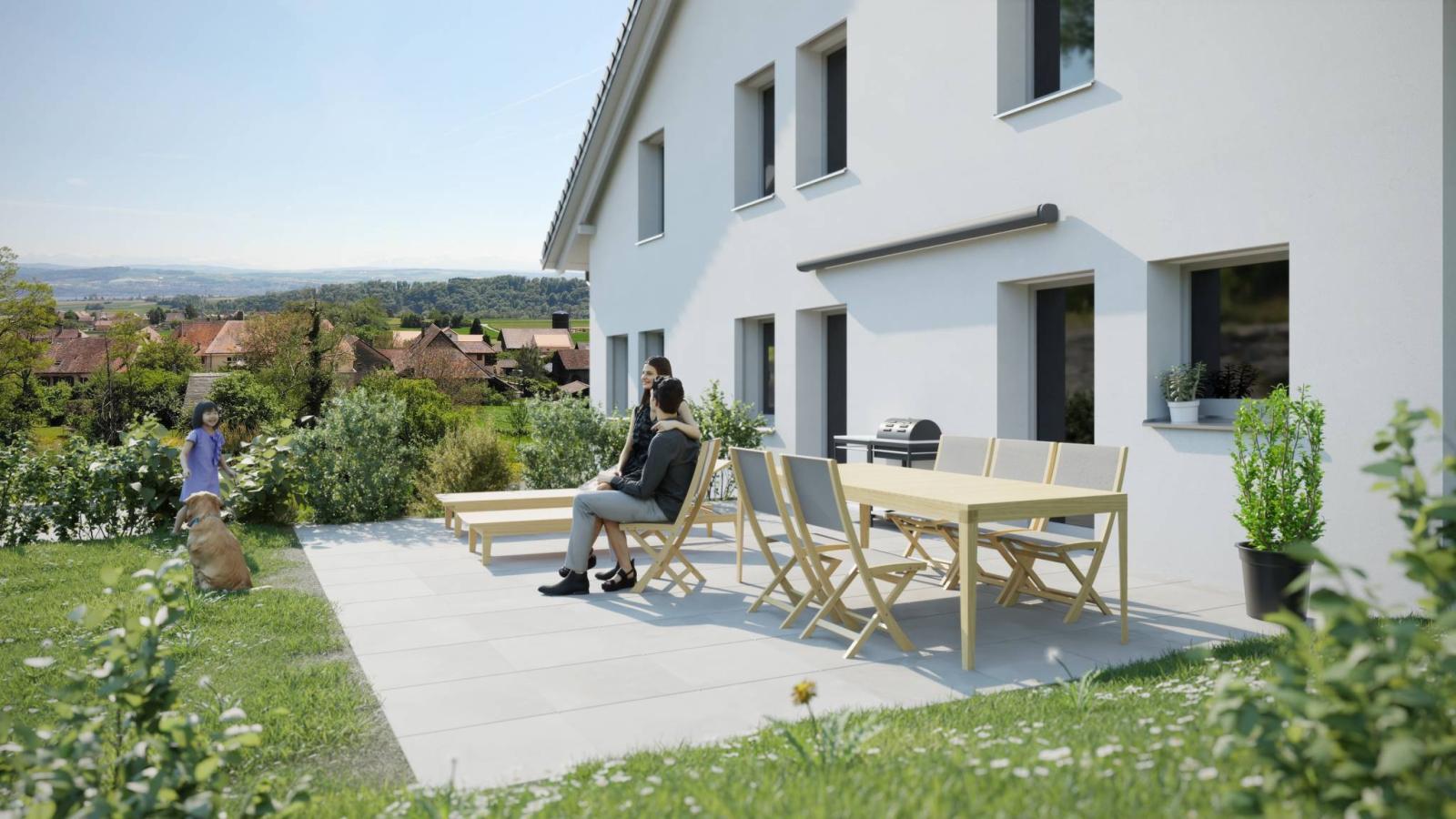 Située au pied du Jura, la Résidence des Fontaines propose 6 somptueux appartements du 3,5 au 5,5 pièces, au cœur de la campagne et proche des grands axes autoroutiers de la région.