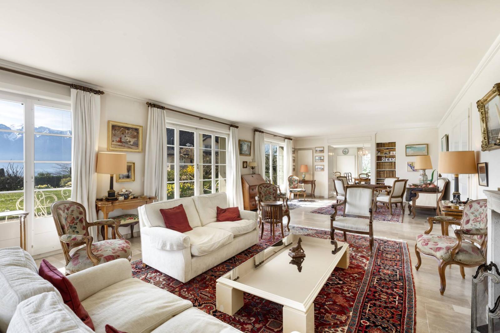 Cette magnifique propriété de 10 pièces, d'environ 347 m² habitables, bénéficie d'une situation exceptionnelle et privative dans un quartier calme et résidentiel. Vous pourrez profiter d'une vue imprenable sur le lac Léman et les montagnes environnantes.