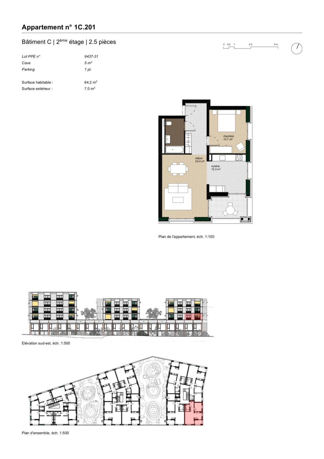 28 appartements de 2.5 pièces entre 49 et 68 m² + loggia105 places de parc, dont 38 places visiteurs
